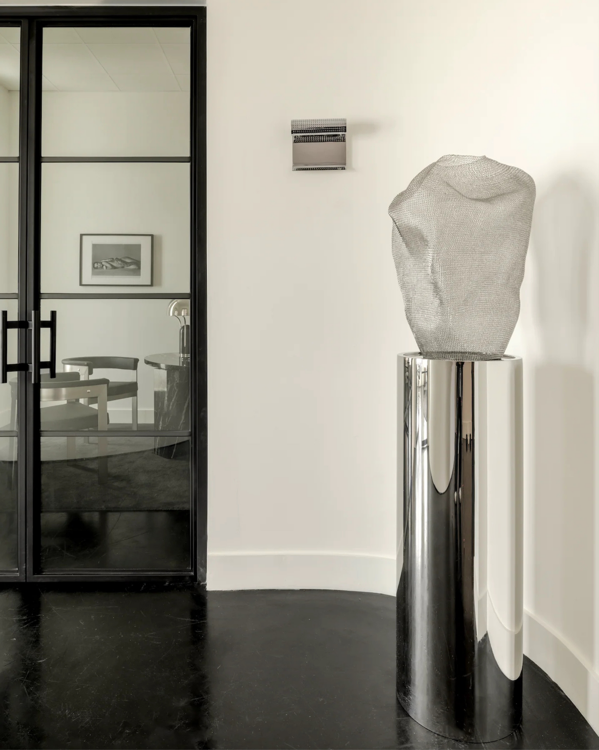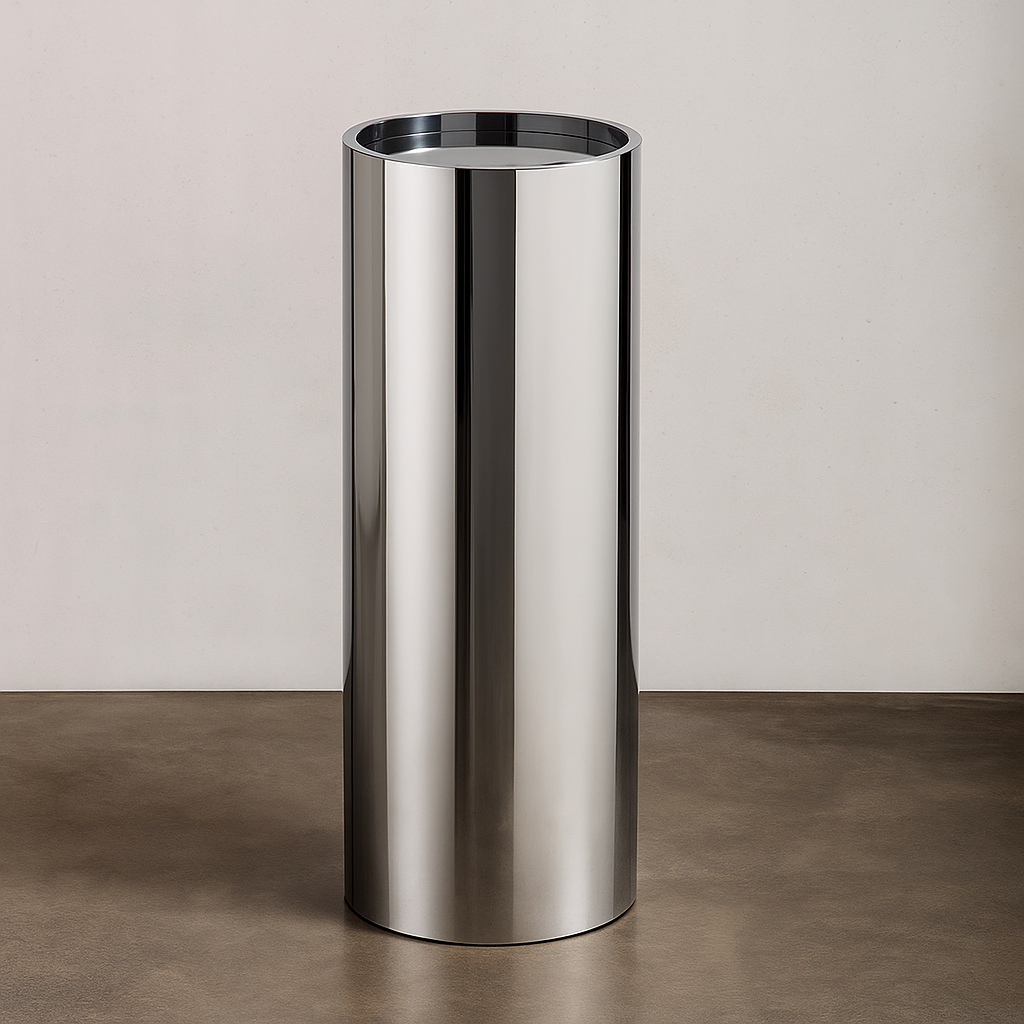 Alphaville PedestalMinimalist and modern, solid and simplified: polished stainless steel with a smoke mirror top. Our Alphaville Pedestal is a decorator's secret weapon—place a vibrant vase or bold bust on top, plunk it in an unused corner or in front of a window, or double up and flank a chair or console.