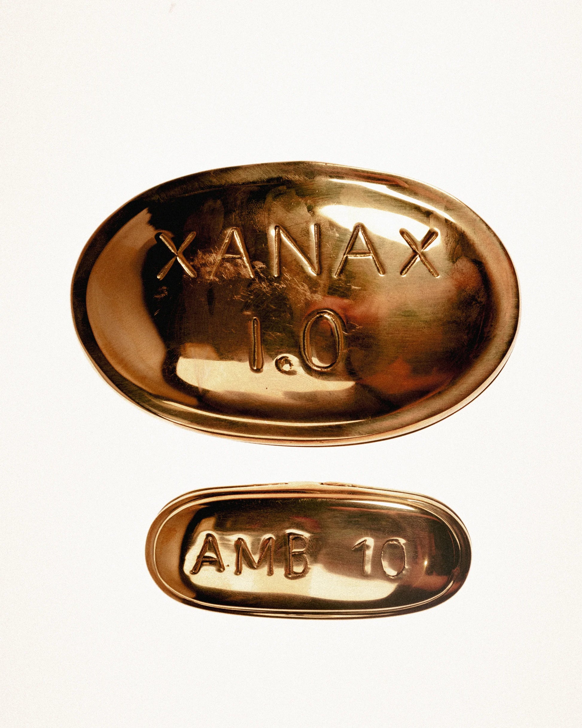 Ambien Pill BoxWe've taken our longtime love of pharmaceuticals to a new level of luxe: cast in solid brass, our hinged pill boxes are just what the decorator ordered—a dose of glamour in warm hand-polished brass or a pop of jewel-like sparkle in shining silver plating. Each box top is laser-etched with an mg presciption. The perfect provocative touch for your tablescape or hip hideaway on your bedside table.