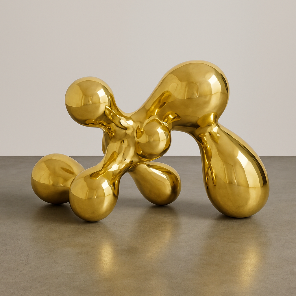 Giant Brass OrbThe Giant Brass Orb began its journey as a commanding ceramic sculpture, but JA realized the sinuous lines and smooth surface would look most intriguing in glossy, polished brass. The dynamic form can be displayed on multiple sides. Let it rule your cocktail table, place it on a pedestal, or be bold and plop the 54-pound sculpture in a corner for an avant-garde vibe.