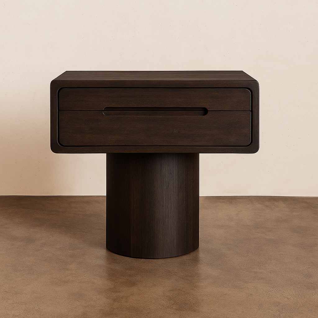 The Tabby Nightstand is crafted from walnut and veneer with a rich ebony walnut finish. Featuring two spacious drawers, this modern yet timeless piece offers both style and functionality. Perfect for keeping bedside essentials organized while elevating your space with its sleek design.