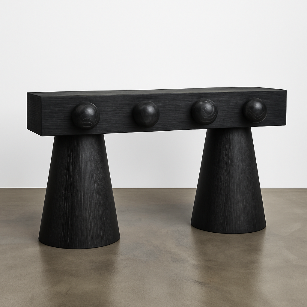 Yasmin ConsoleThe Yasmin Console Table is where timeless design meets nature’s elegance. Crafted with a black oak veneer, its bold silhouette and deep finish exude sophistication and strength. Delicate white grooves carve through the surface, revealing the layered beauty of the wood and lending a tactile richness to its Art Deco-inspired form. More than just a functional piece, the Yasmin is a statement—equally at home in a refined entryway or anchoring a curated living space. With its fusion of organic texture and classic shape, this table doesn’t just furnish a room—it elevates it.